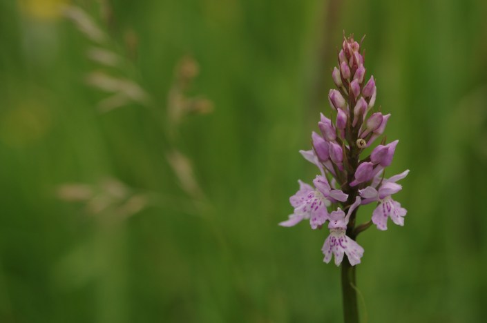 Such are my less than conclusive thoughts as I leave the summit, following by whim an inviting flagged path winding down the back of the hill between endless stretches of cotton-grass. Now there’s one of my favourite things: for some reason, cotton-grass really cheers me up. In fact it’s up there with halloumi cheese, Chopin’s piano concerto in E minor and Edinburgh. And I might have gone on thinking that was the best result I could have hoped for from this walk on a dreach day until lower down in the valley I come across a swathe of exquisite orchids dotted about in a fabulous meadow. It really was worth the trip just for that. After all, looking closely at the details is just as valuable as seeing the bigger picture – there being, of course, a right time for both.
