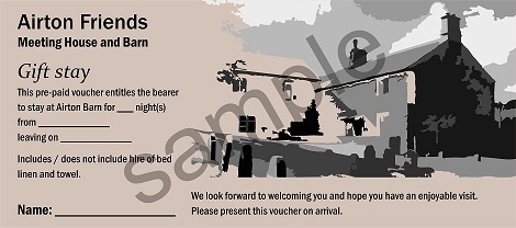 Payments by cheque made out to Airton Friends’ Meeting. Other payment methods by arrangement.